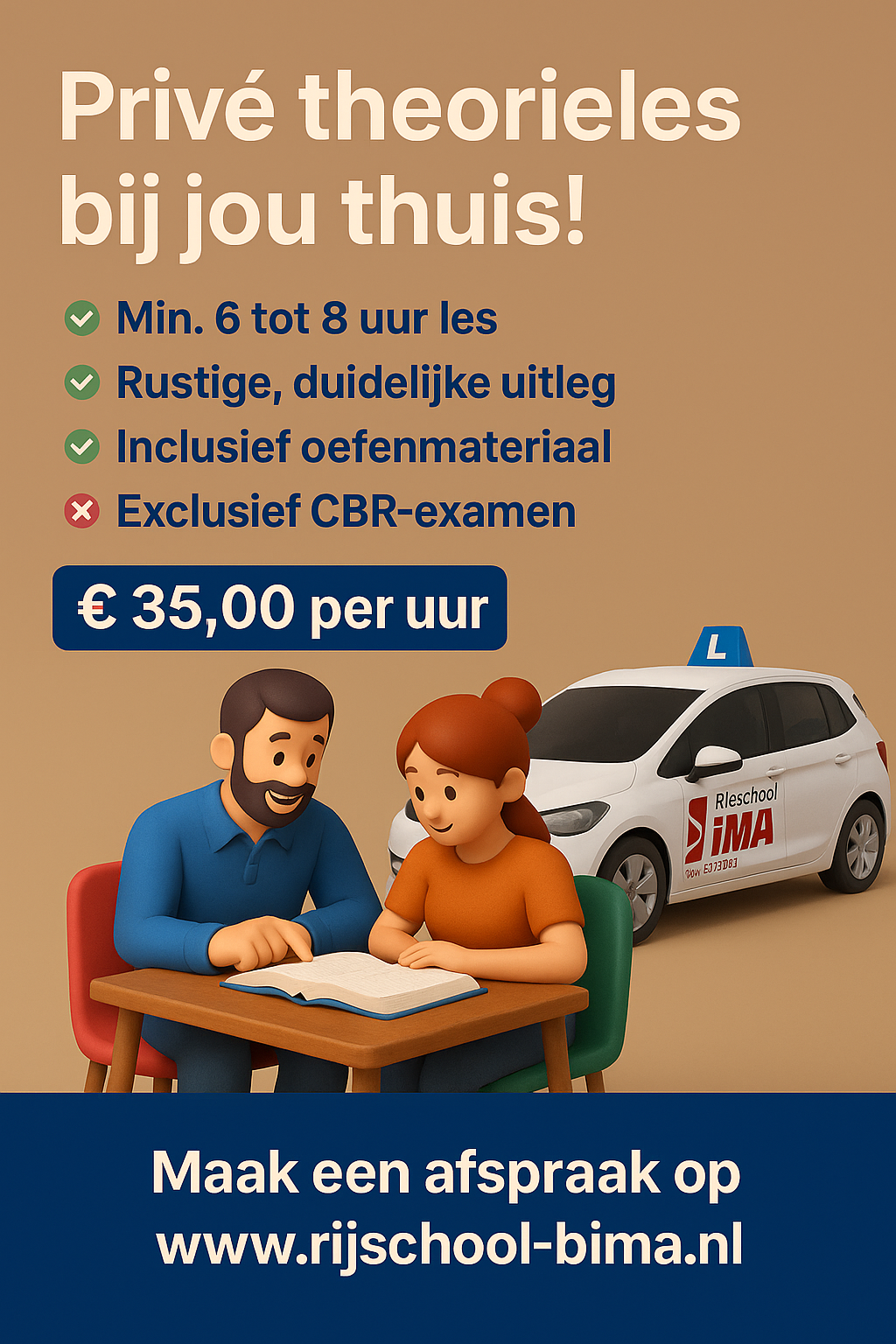 Ben je op zoek naar een rustige, duidelijke en persoonlijke manier om je auto theorie-examen bij het CBR te halen? Dan ben je bij Rijschool BiMa aan het juiste adres. Wij bieden privé theorieles aan huis aan in Heerhugowaard, Alkmaar en omliggende dorpen, speciaal voor leerlingen die liever individueel les krijgen in hun eigen vertrouwde omgeving.